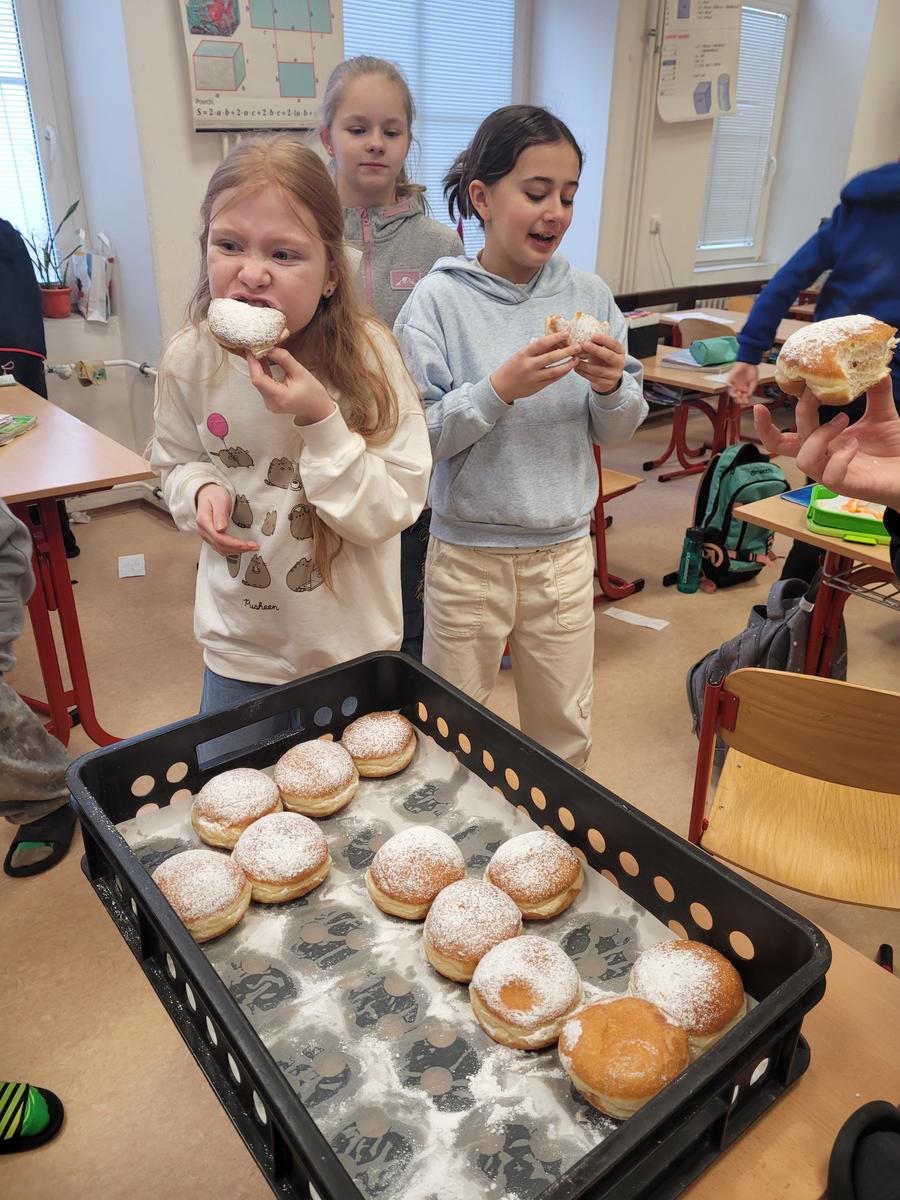 Tradiční projekt si užili žáci třídy 5. B. Napříč všemi předměty si připomněli masopustní zvyky, na dané téma vypočítali několik slovních úloh a poradili si i s rozborem textu. Projekt ukončili výstavou výtvarných prací na téma „Masopustní masky“. Za skvělou práci děti paní učitelka odměnila jako každoročně výbornými masopustními koblihami. Mgr. Jolana Hegedüsová