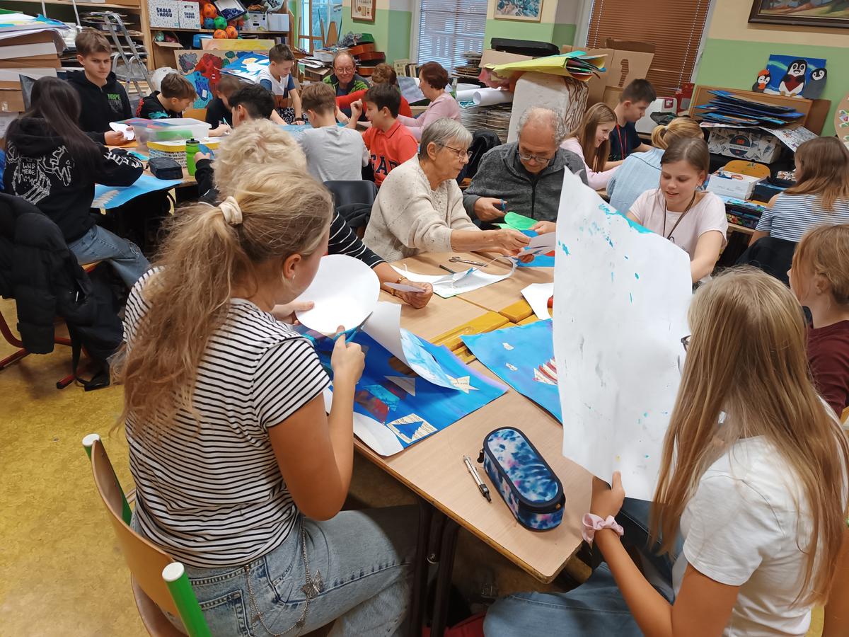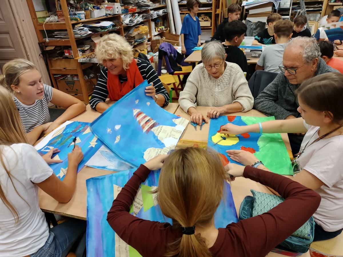 Ve čtvrtek 28.11. se ve třídě 7.D odehrála neobyčejná hodina výtvarné výchovy, která spojila dvě generace. Žáci spolu se svými babičkami a dědečky tvořili sněhuláky s vánočními vzkazy. Cílem nebylo jen vytvořit originální dekoraci, ale také prohloubit vztahy mezi mladými a staršími a připomenout, jak důležité je trávit čas společně. Žákům i jejich prarodičům se netradiční hodina moc líbila. Hned po úvodním přivítání se všichni pustili s chutí do práce. Každý tým dostal za úkol vytvořit sněhuláka z recyklovaného materiálu a připojit k němu vzkaz nebo přání k Vánocům. Atmosféra byla plná smíchu a povídání.