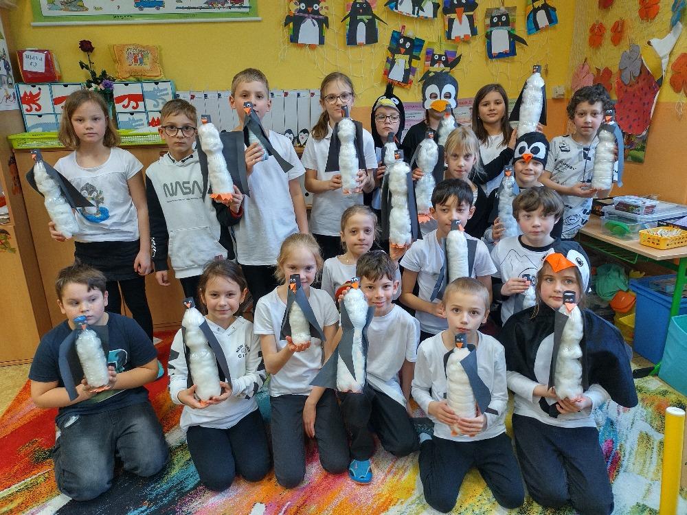 V pátek 17.února se 2.A proměnila v Antarktidu, kam dopluli tučňáci. Začali jsme veselou písničkou o tučňácích, potom jsme lovili ryby se slovy a procvičili tak měkké a tvrdé souhlásky. Jindy jsme zase příklady dopravovali pomocí tučňáčí chůze ke správným výsledkům. Hledali jsme informace o tučňácích po staru v encyklopediích, ale i nově na tabletu. Nakonec jsme si i vyrobili tučňáka na památku. Fotky si můžete prohlédnout v galerii.