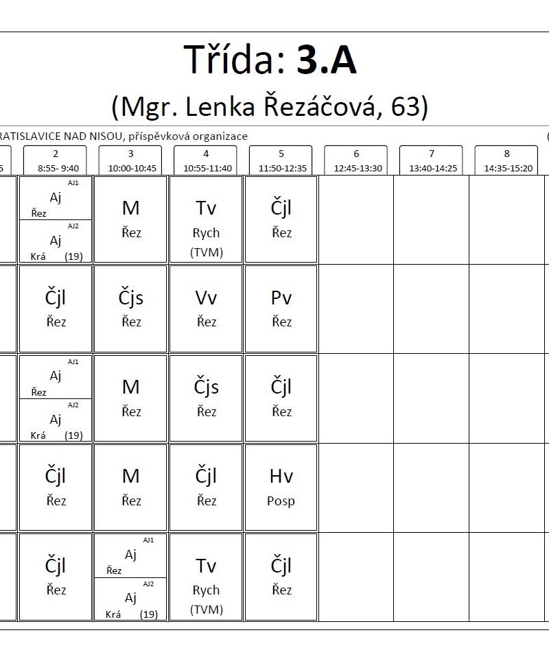 • Rozvrh hodin