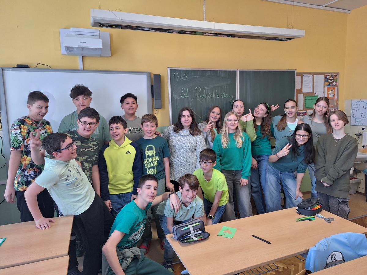 Každoročně se 17.března v anglicky mluvících zemí slaví svátek Svatého Patrika na počest patrona Irska. A tak si tento den oslavila i třída 7.A. Poznávacím znamením, že se něco děje, byla zelená barva na oblečení žáků, která nás v různých podobách provázela celým dnem. Vystřihovali jsme typické trojlístky (schamrock), pomocí práce s textem a videí zjišťovali informace o tradicích svátku a samotném Sv. Patrikovi. Vyzkoušeli jsme si také irský tanec jig. Lidé v tento den jedí zelená jídla, a proto jsme na 2 hodiny zavítali do kuchyňky a ve skupinách žáci tvořili-muffiny, těstoviny, salát, palačinky, guacamole, puding, to vše v zelených tónech a moc se jim to podařilo. Fotky si můžete prohlédnout v galerii.