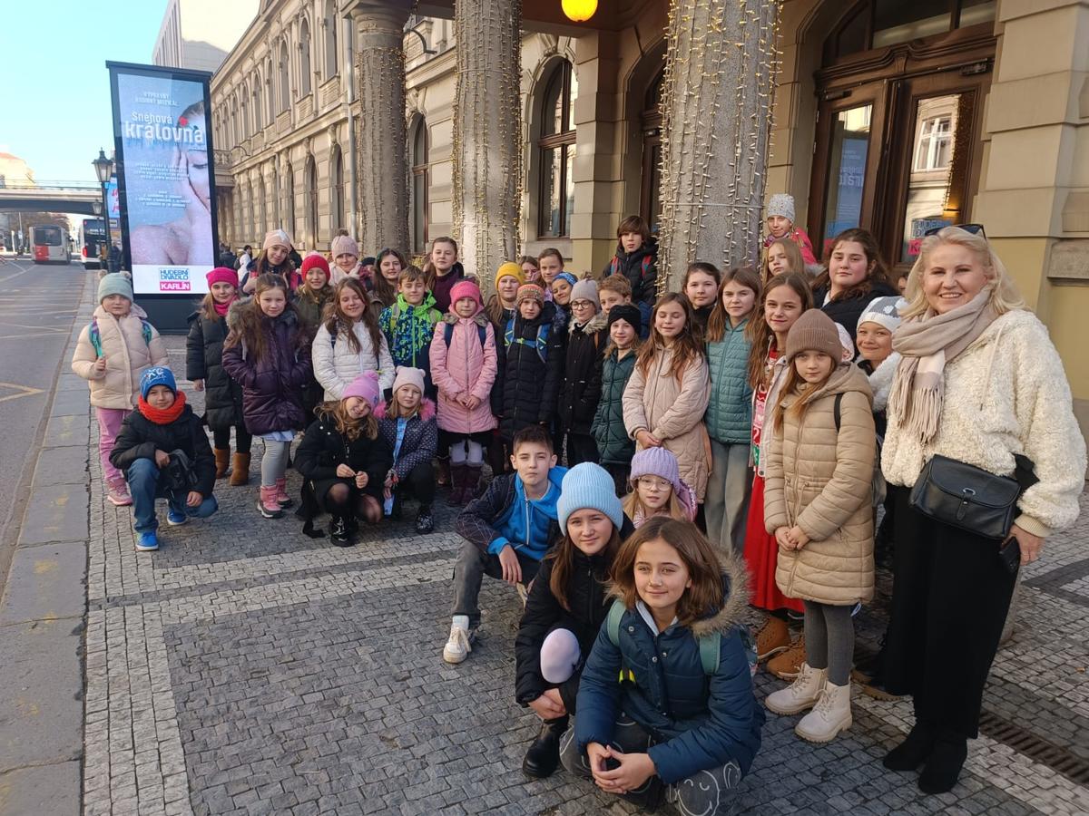 Ve středu 19.11. 2025 navštívilo 45 žáků ze 4. a 5. tříd pražské divadlo Karlín, aby zhlédli muzikál Sněhová královna. Představení je o boji dobra se zlem, přátelství, lásce, odvaze i statečnosti. Žáci si nejen prohlédli krásné prostředí divadle, ale také se sami přesvědčili, co vše k muzikálu patří. Sledovali herce, zpěváky, tanečníky i orchestr s dirigentem. Už se těšíme až si příští rok tuto zkušenost užijí další žáci.