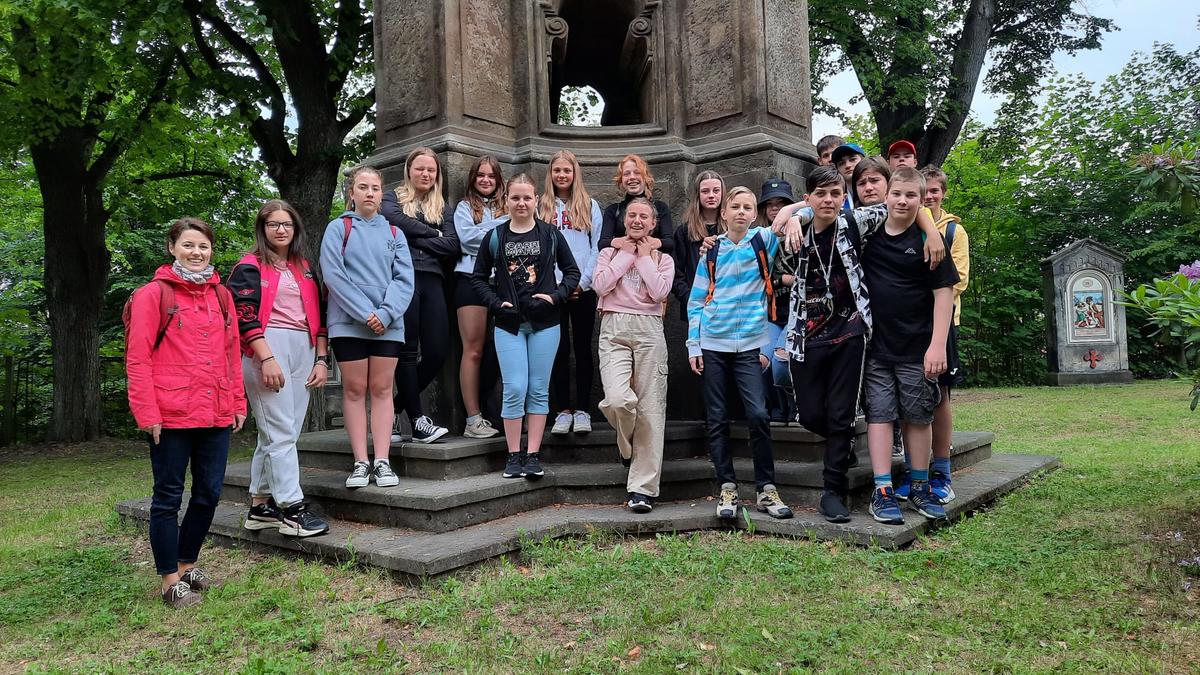 Prohlídka novogotického kostela byla rozdělena na dvě části. Polovina žáků nejprve vyslechla od vyučující informace o kostelní symbolice (např. proč se vchod nachází vždy na západě a hlavní oltář zase na východě, proč se prostoru uvnitř kostela říká loď, kde seděla během mše hraběcí rodina a kde kněz, proč svítí vepředu červené světlo, proč se křtí na hlavu atd.). Bylo velkou náhodou, že třída 7.E přišla na exkurzi do kostela přesně v den 140. výročí jeho slavnostního vysvěcení (13. 6. 1883). Vzhledem k tomu, že rod Liebiegů sponzoroval výrobu některých vitráží, měli žáci vypátrat, kde jsou zachyceni jejich portréty či podobizny dětí, kdy okenní vitráže vznikly, nebo najít v kostele sochy českých patronů, o kterých jsme si během roku v dějepise říkali – sv. Ludmilu, sv. Václava či sv. Jana Nepomuckého.