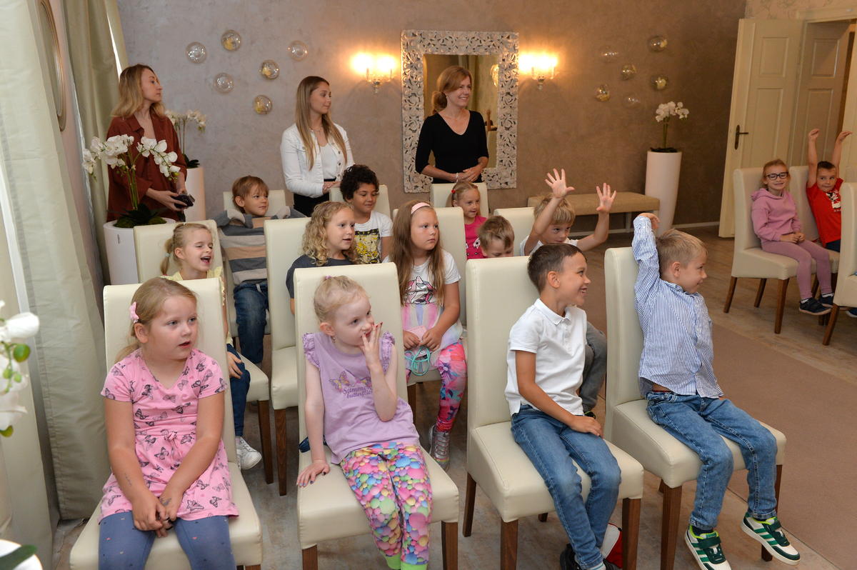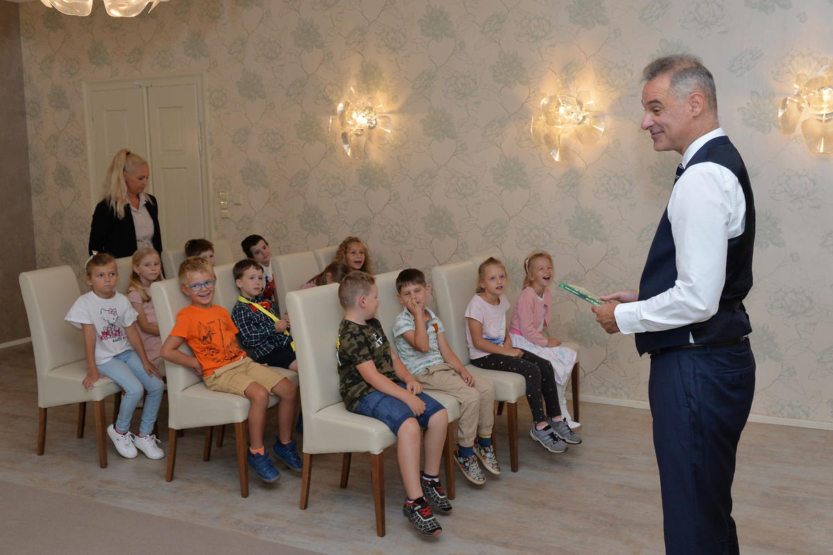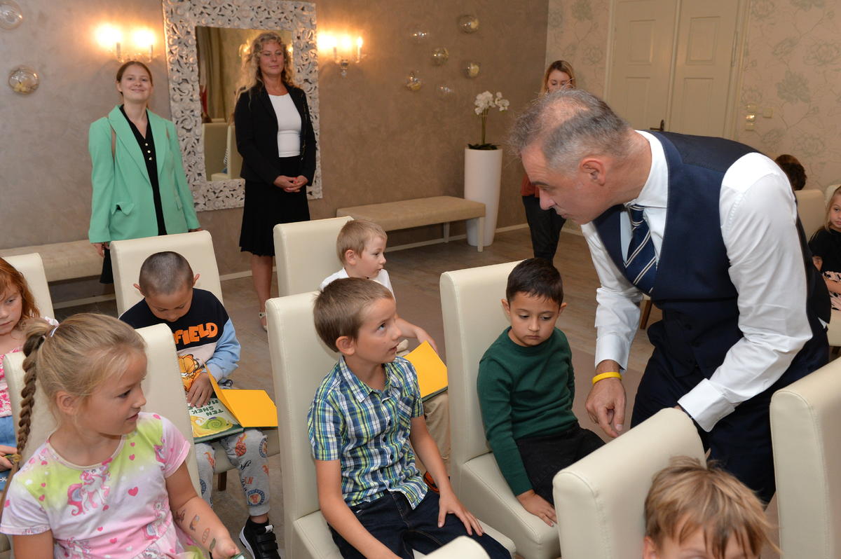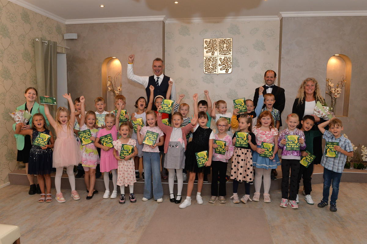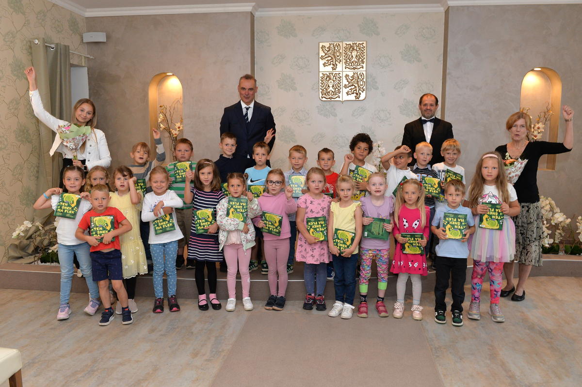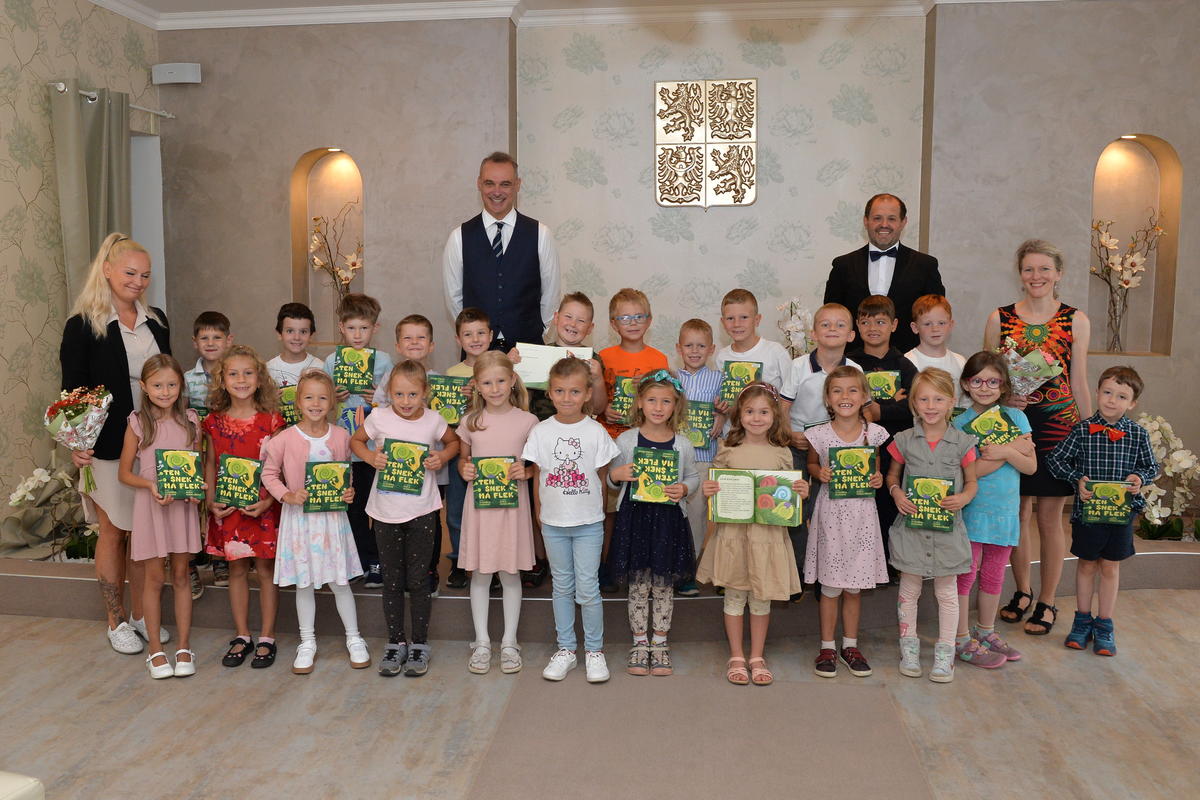 5.9. byl pro nové školáky sváteční den. Spolu s paní učitelkami a paní asistenkami šli na návštěvu za panem starostou. Pan starosta je krátce přivítal, zavzpomínal na svá školní léta a slíbil jim, že na konci roku, z knížky kterou každý obdržel, si společně přečtou pár řádků. Ti mu na oplátku slíbili, že budou dávat pozor a poslouchat paní učitelky.
