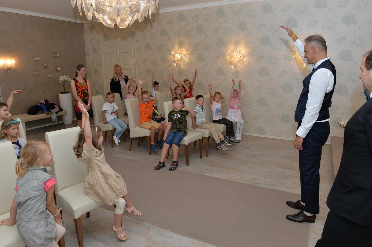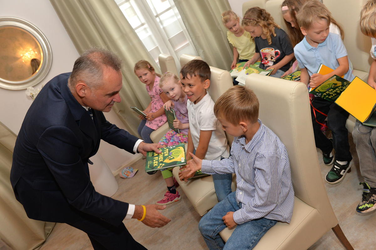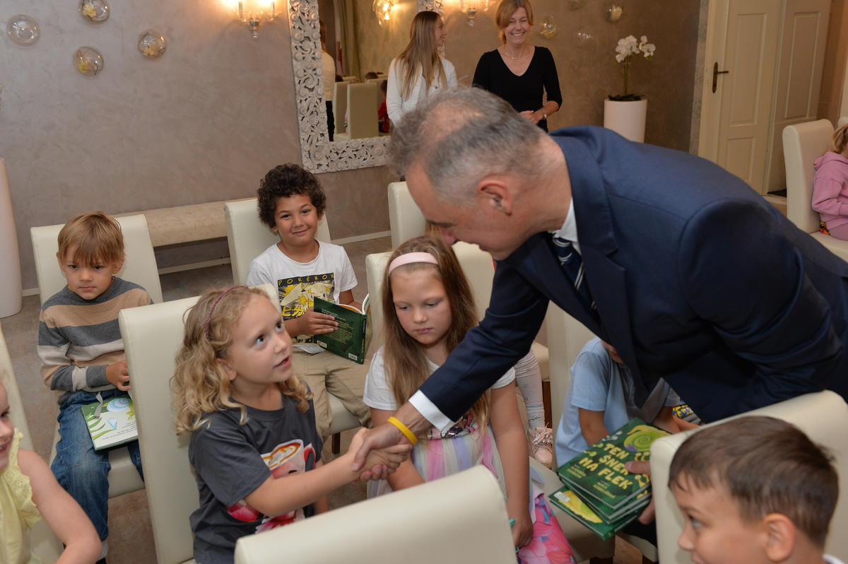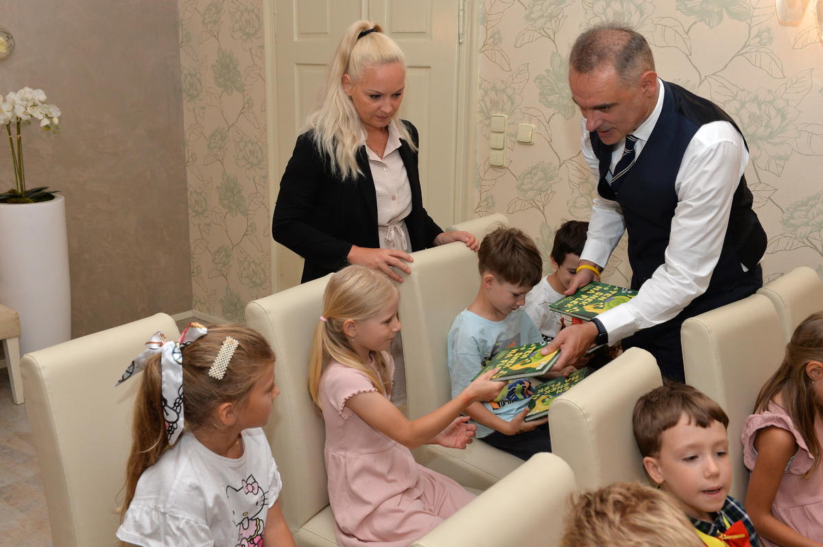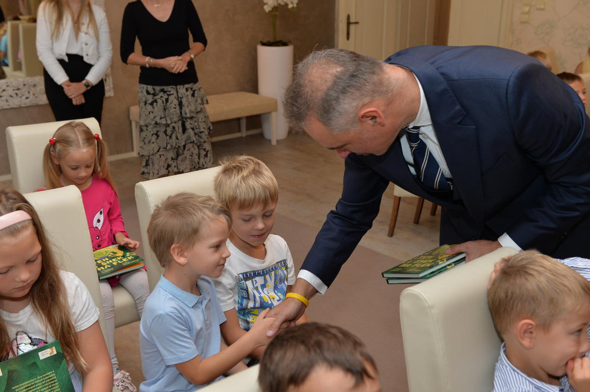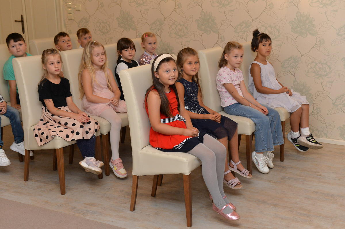 5.9. byl pro nové školáky sváteční den. Spolu s paní učitelkami a paní asistenkami šli na návštěvu za panem starostou. Pan starosta je krátce přivítal, zavzpomínal na svá školní léta a slíbil jim, že na konci roku, z knížky kterou každý obdržel, si společně přečtou pár řádků. Ti mu na oplátku slíbili, že budou dávat pozor a poslouchat paní učitelky.